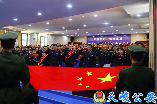 随后,大会还进行了宣誓活动,全体民警举手握拳,面向国旗,重温了人民警察入警誓词。进一步增强了全体民警的荣誉感、责任感和使命感,增强了队伍的凝聚力和战斗力,坚定了全体民警对党忠诚、服务人民、执法公正、纪律严明的忠诚意识,激发了争创佳绩的信心和勇气。